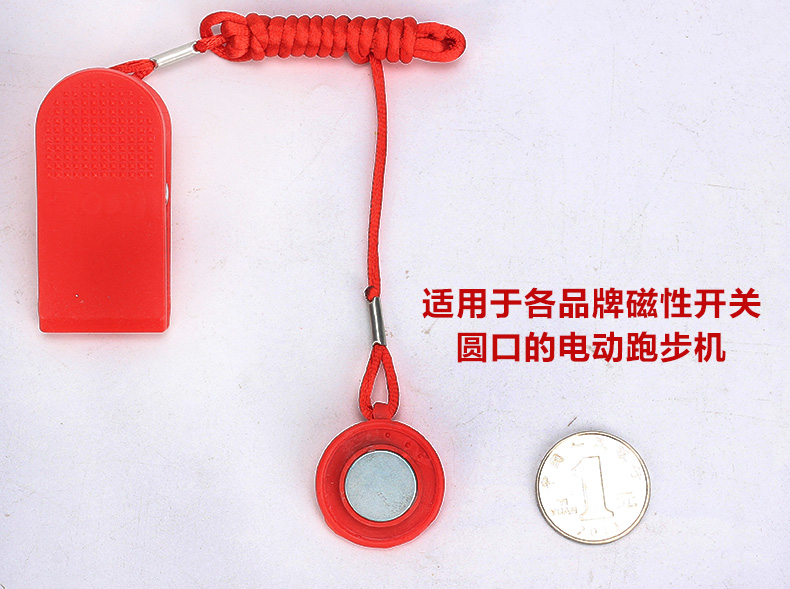 又名安全锁 是跑步机的自动保护装置,当安全开关脱离跑步机感应区域,跑步机会马上停止工作并发出提示音,以起到一个保护作用防止使用者在运动过程中摔倒受伤跑步机安全磁扣